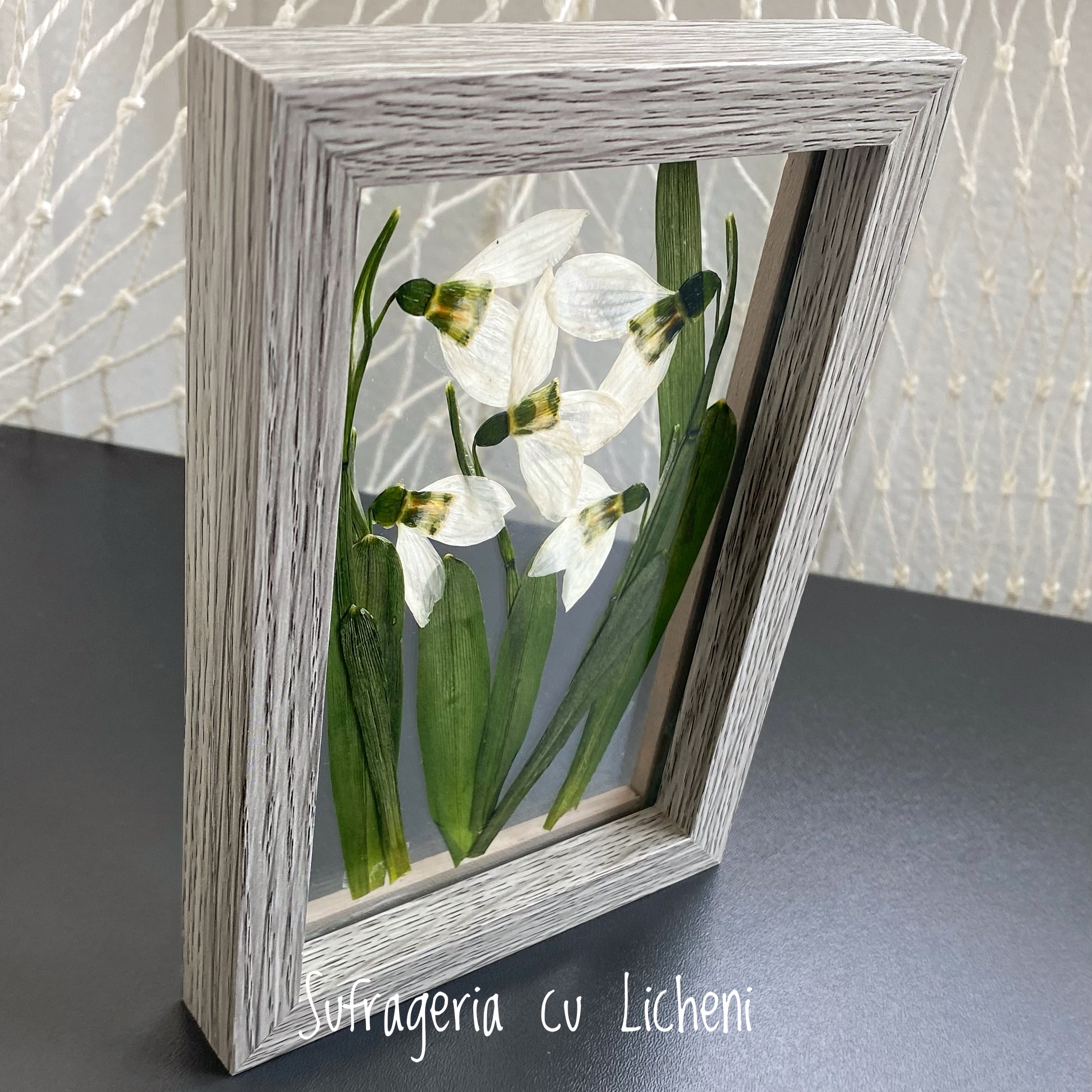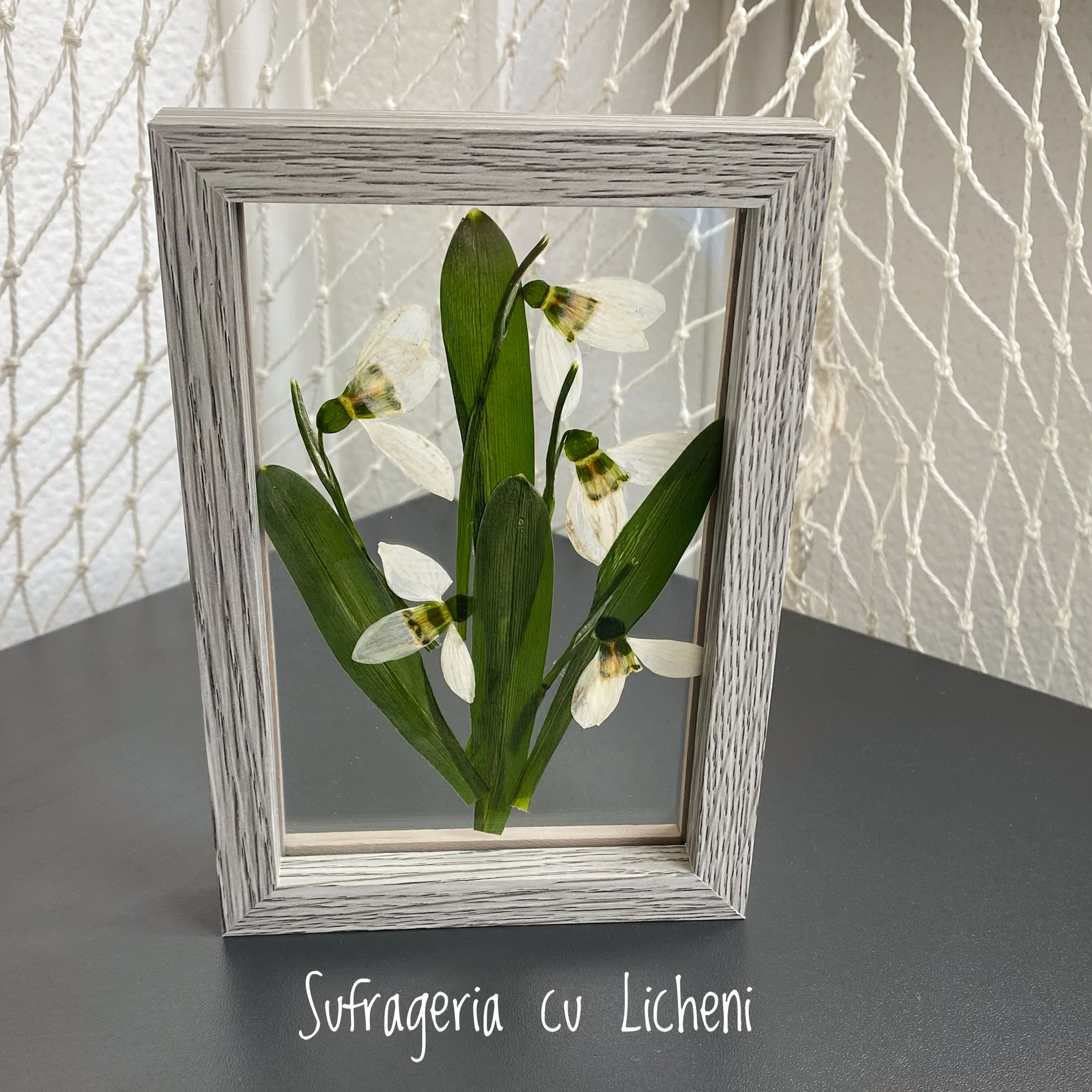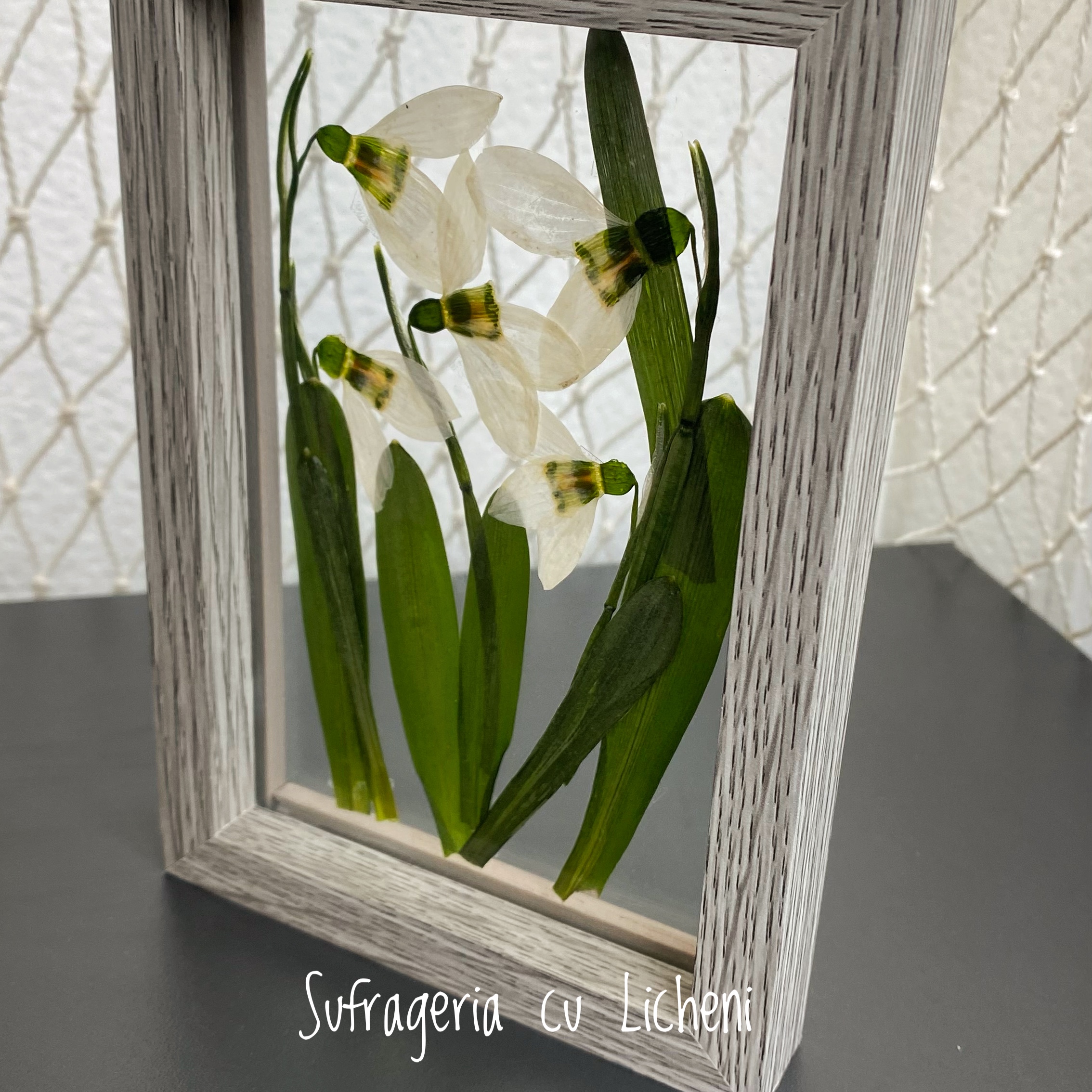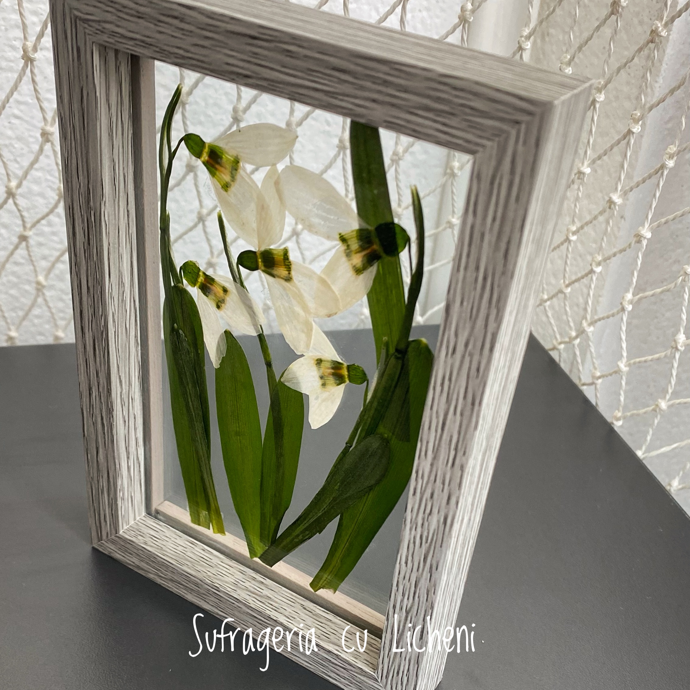 Materiale: Flori naturale presate: Ghiocei, foliaj.