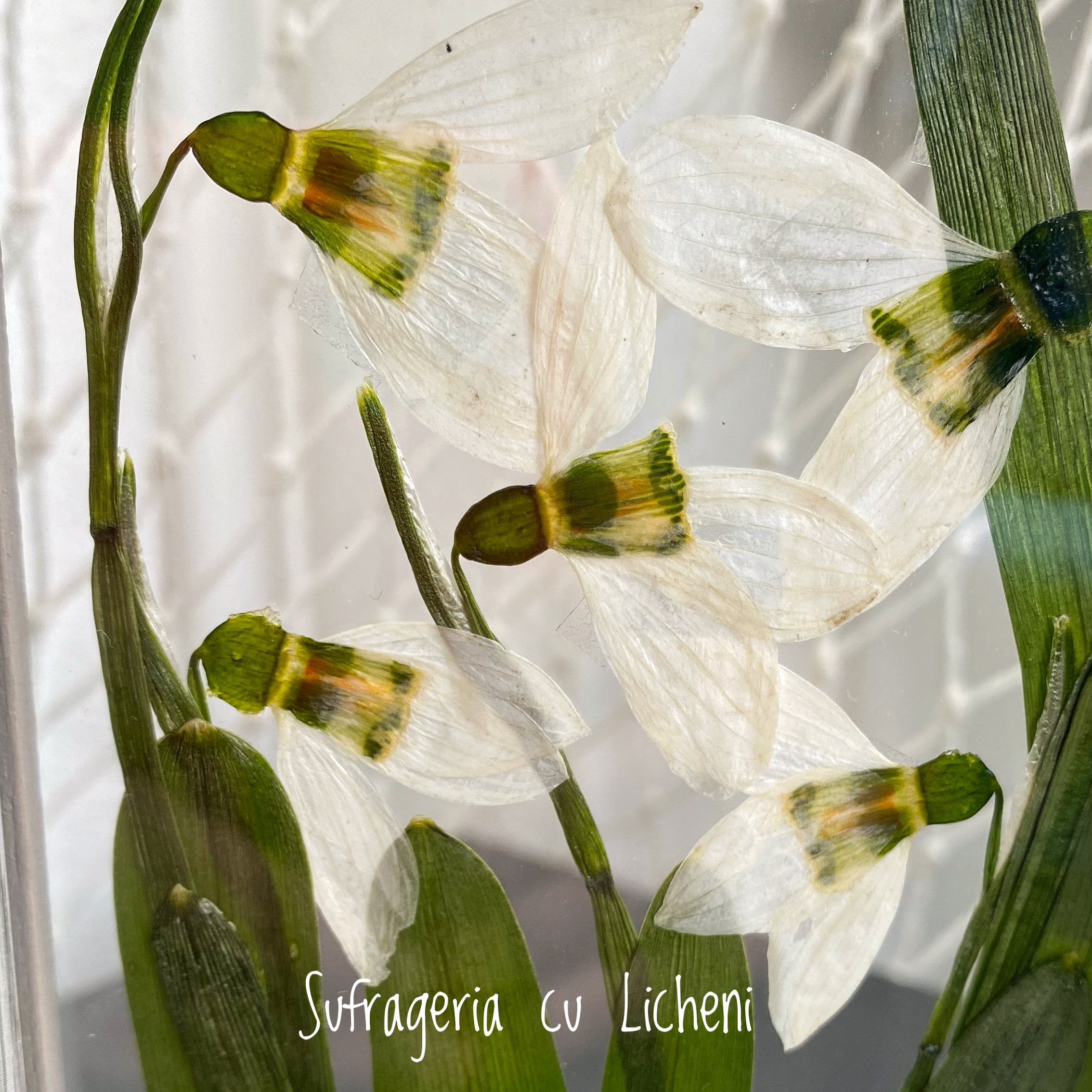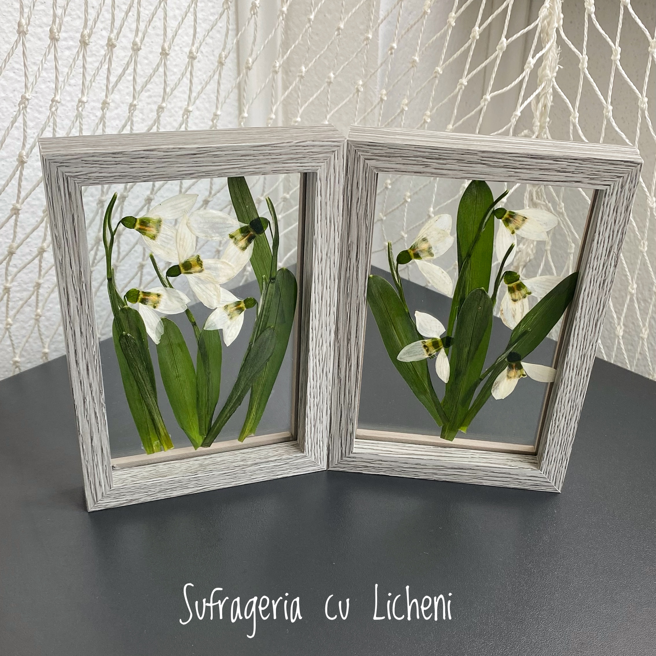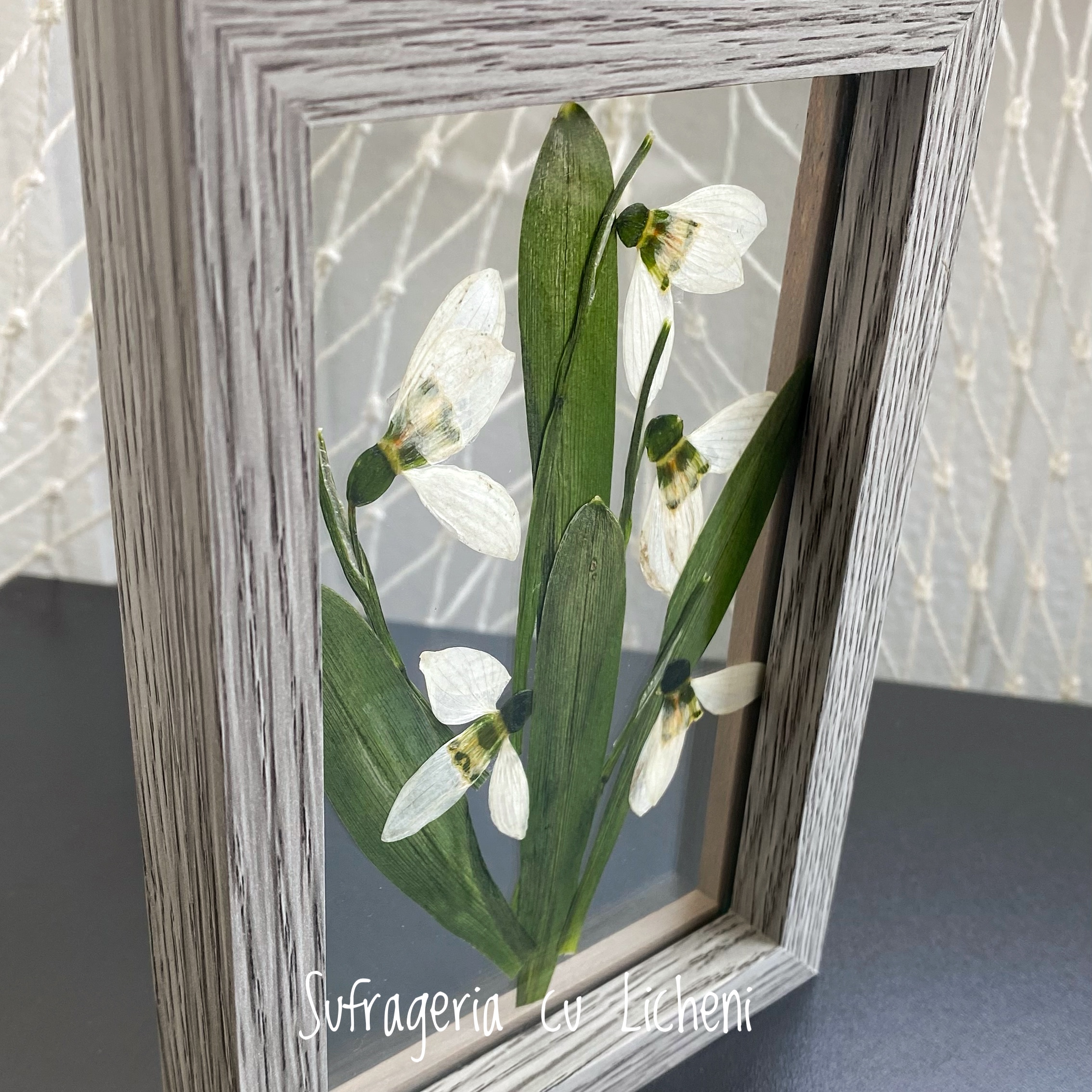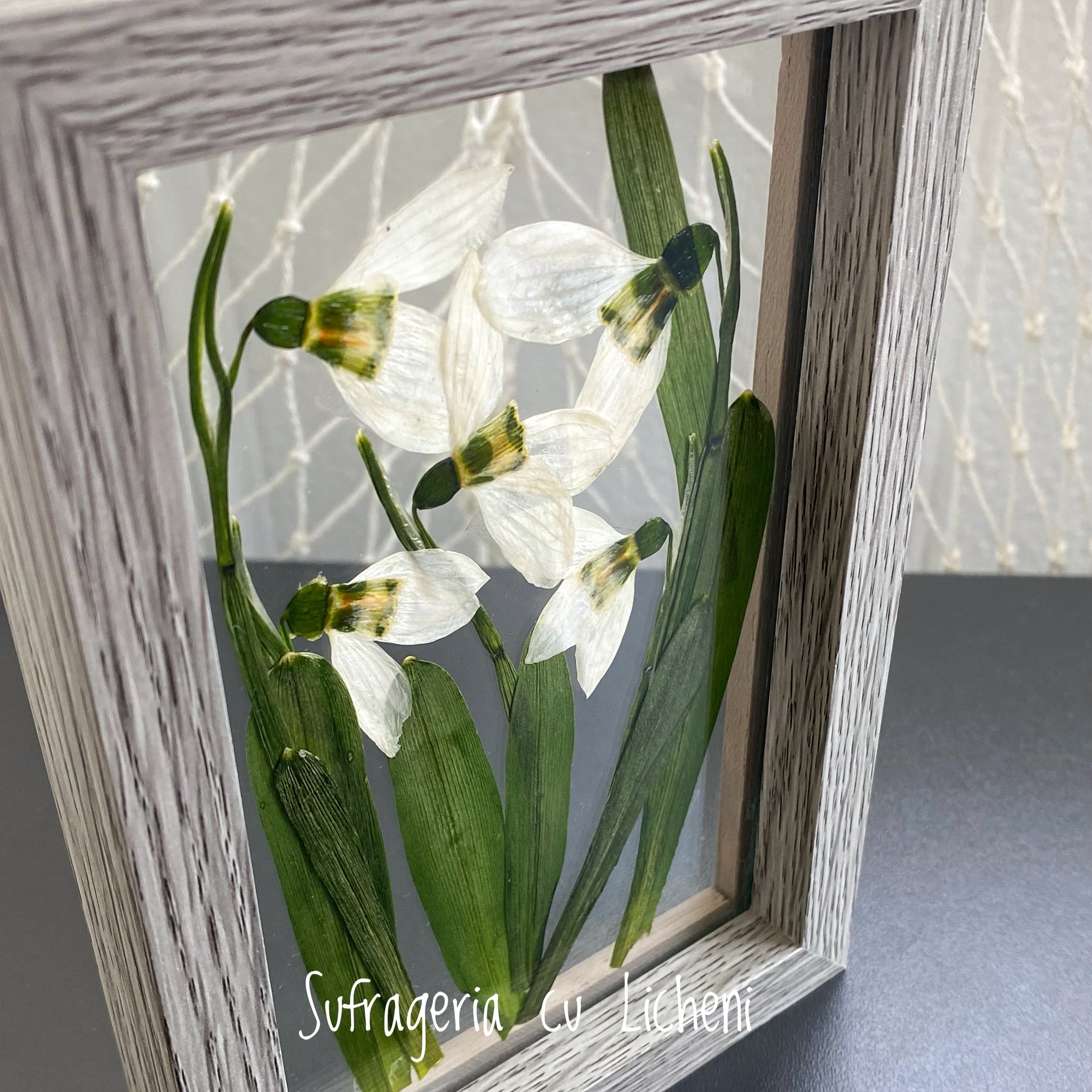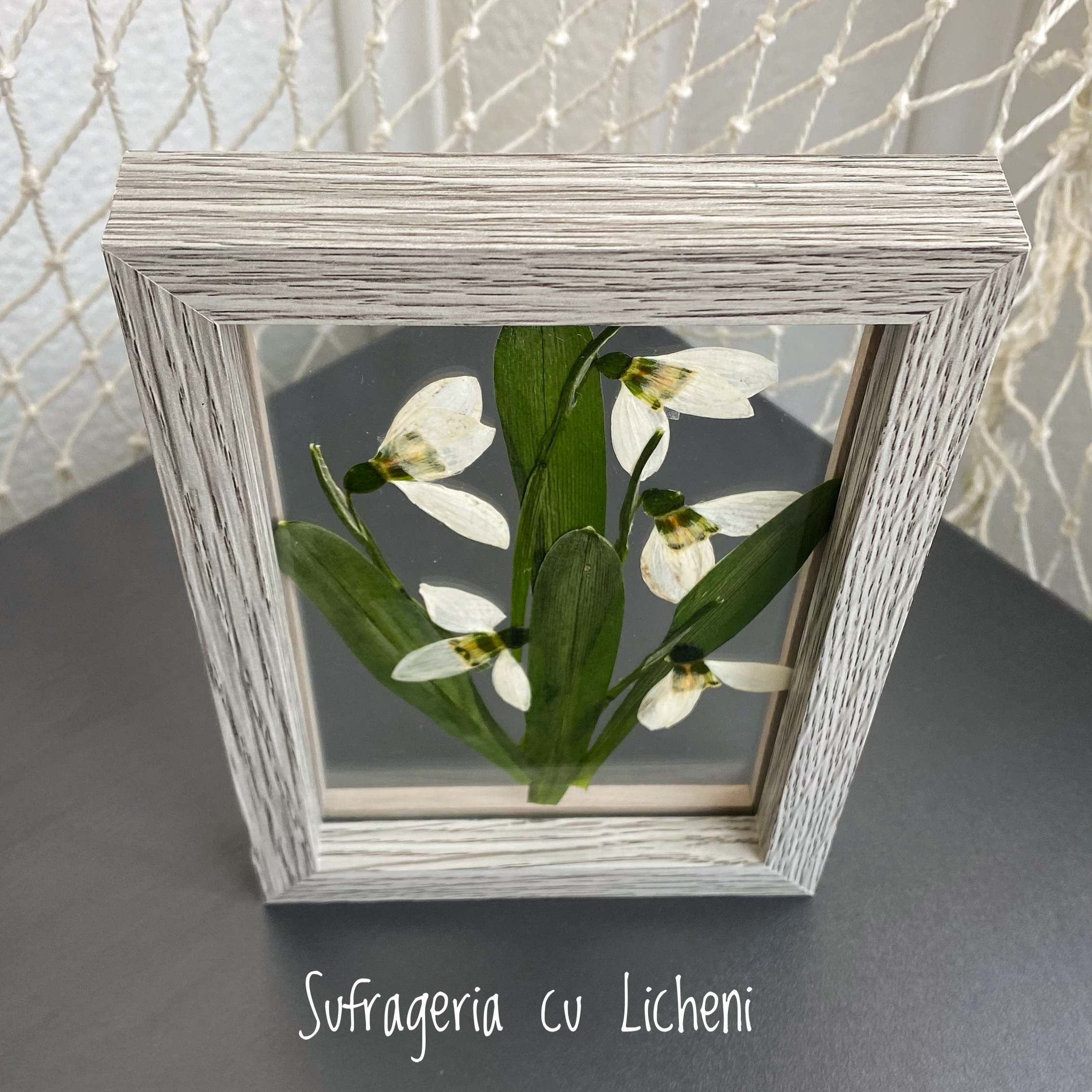 Materiale: Flori naturale presate: Ghiocei, foliaj.