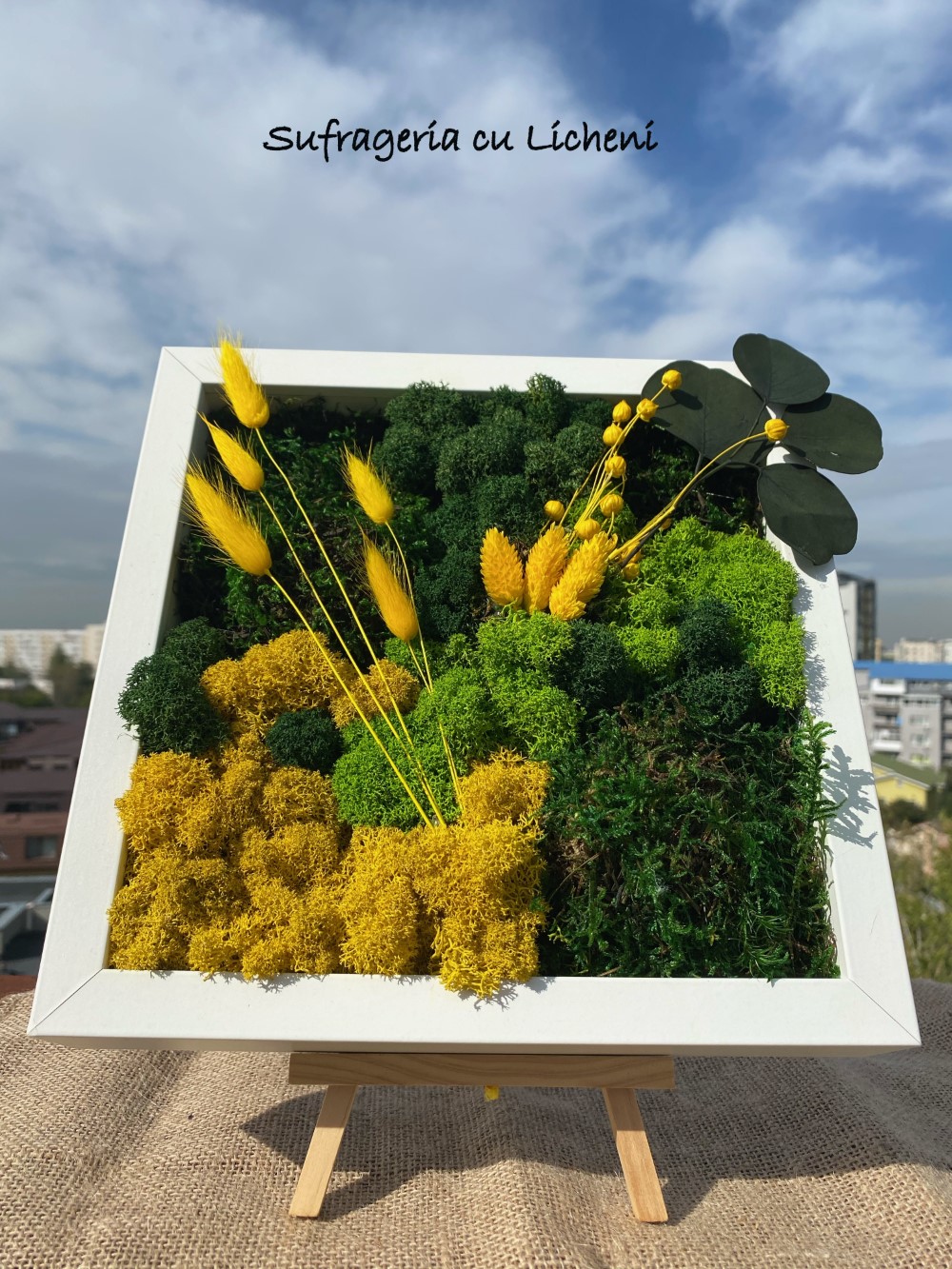 Materiale: Licheni stabilizați, flori uscate, mușchi și elemente din natură