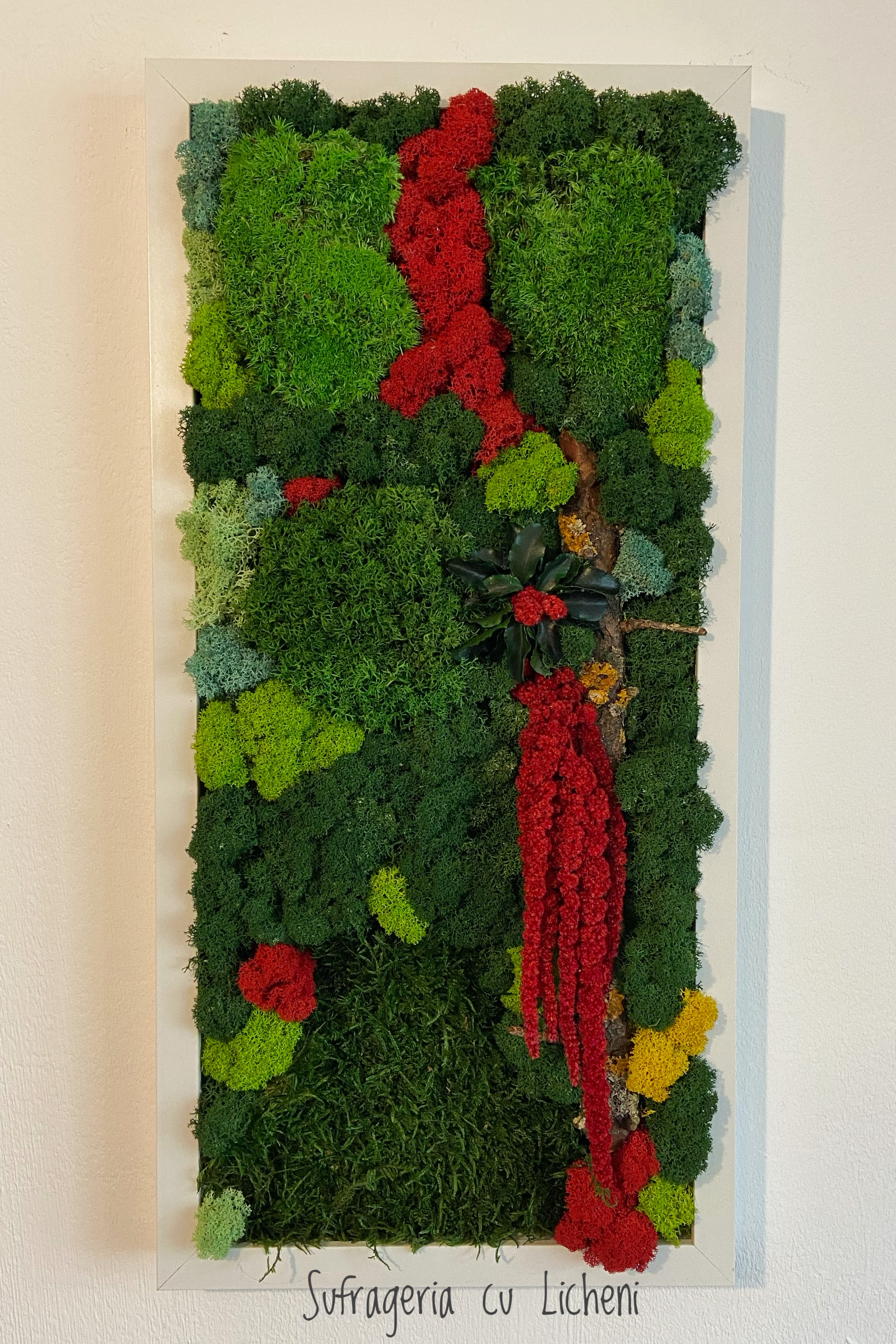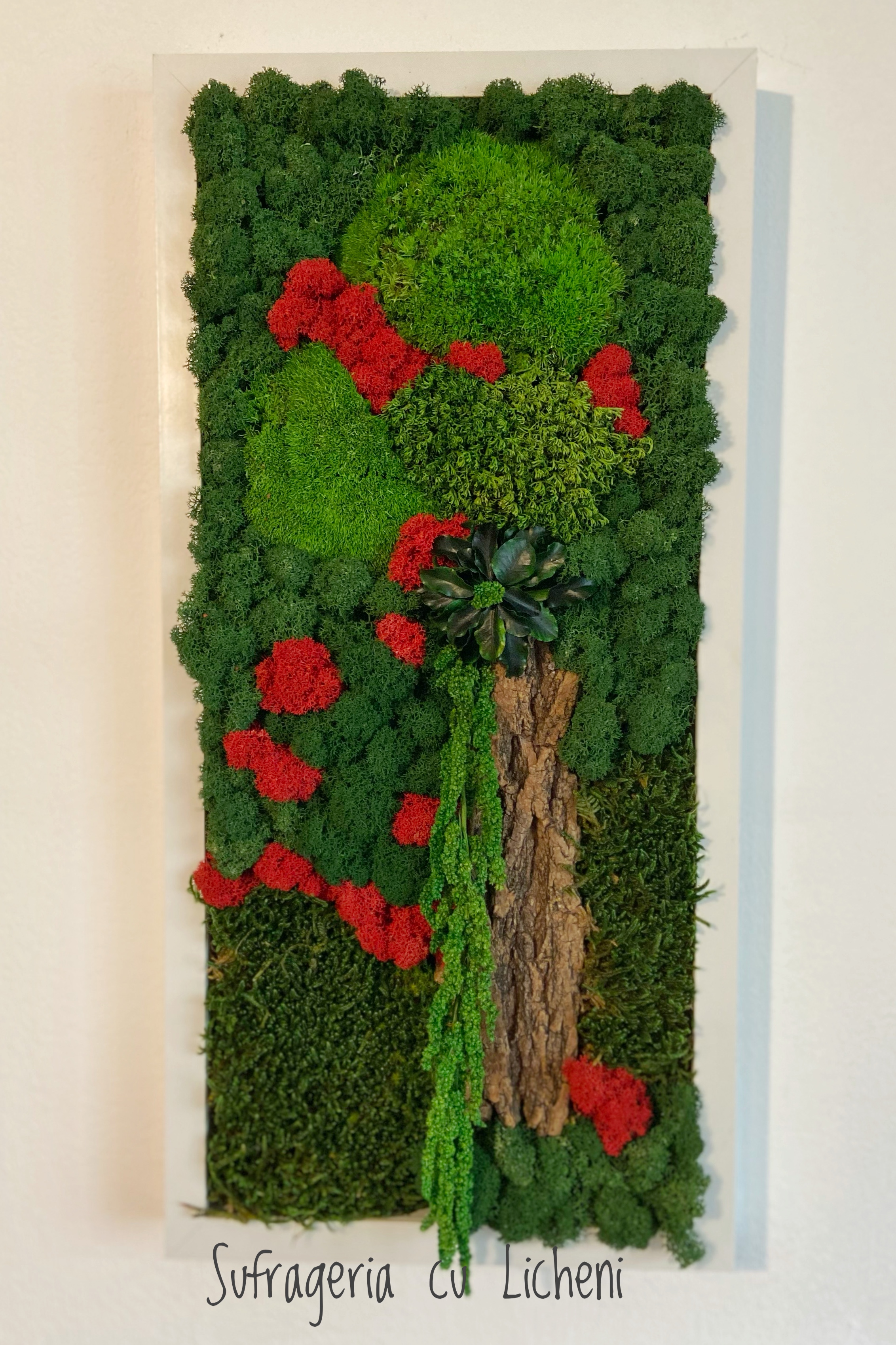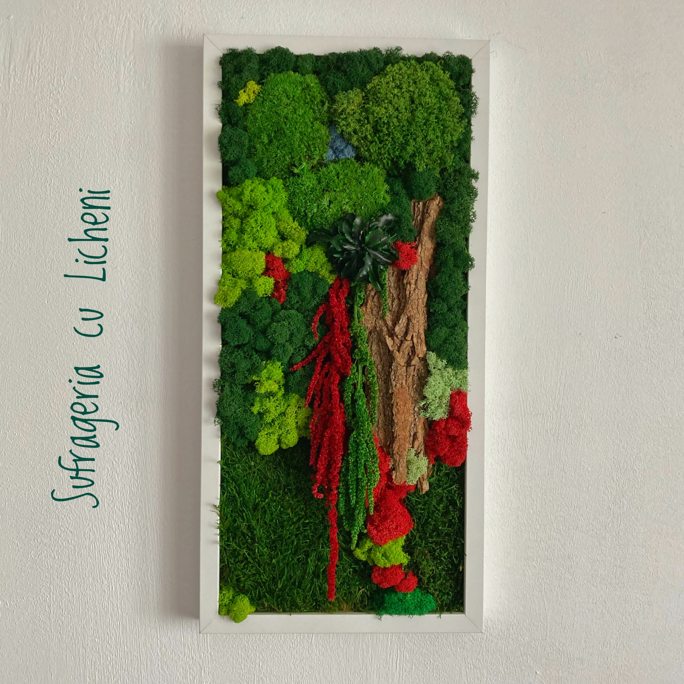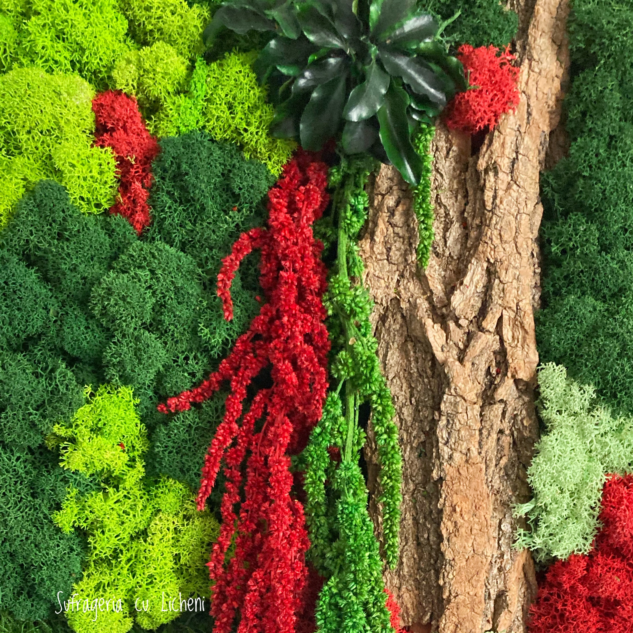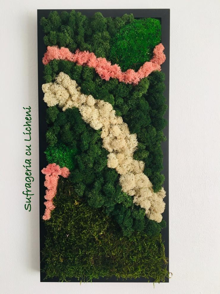 Materiale: Licheni stabilizați, mușchi, alte plante stabilizate și elemente din natură