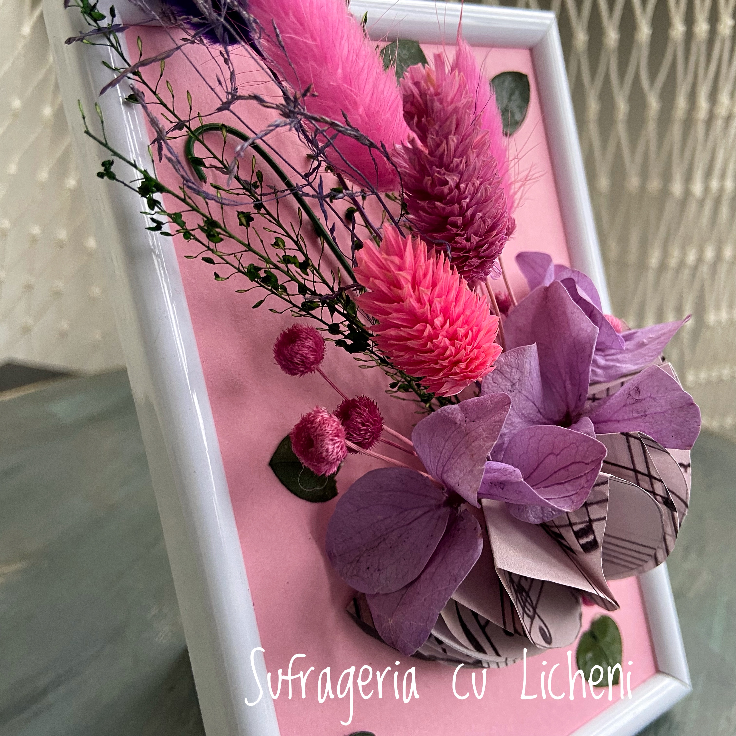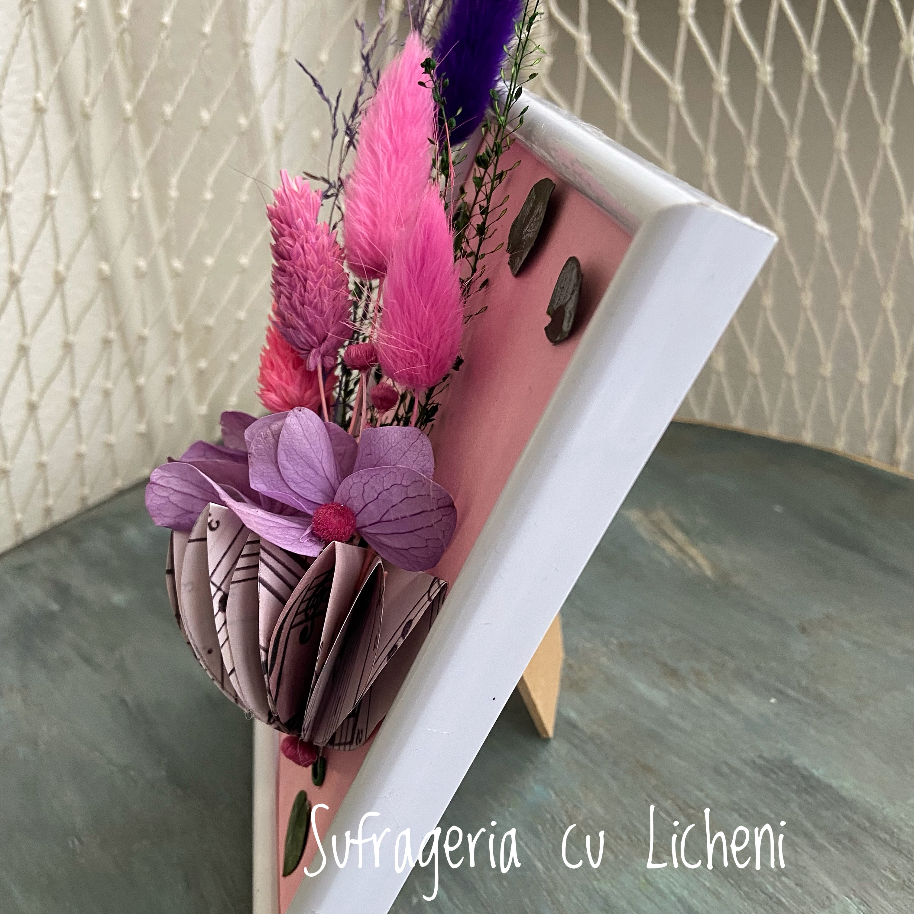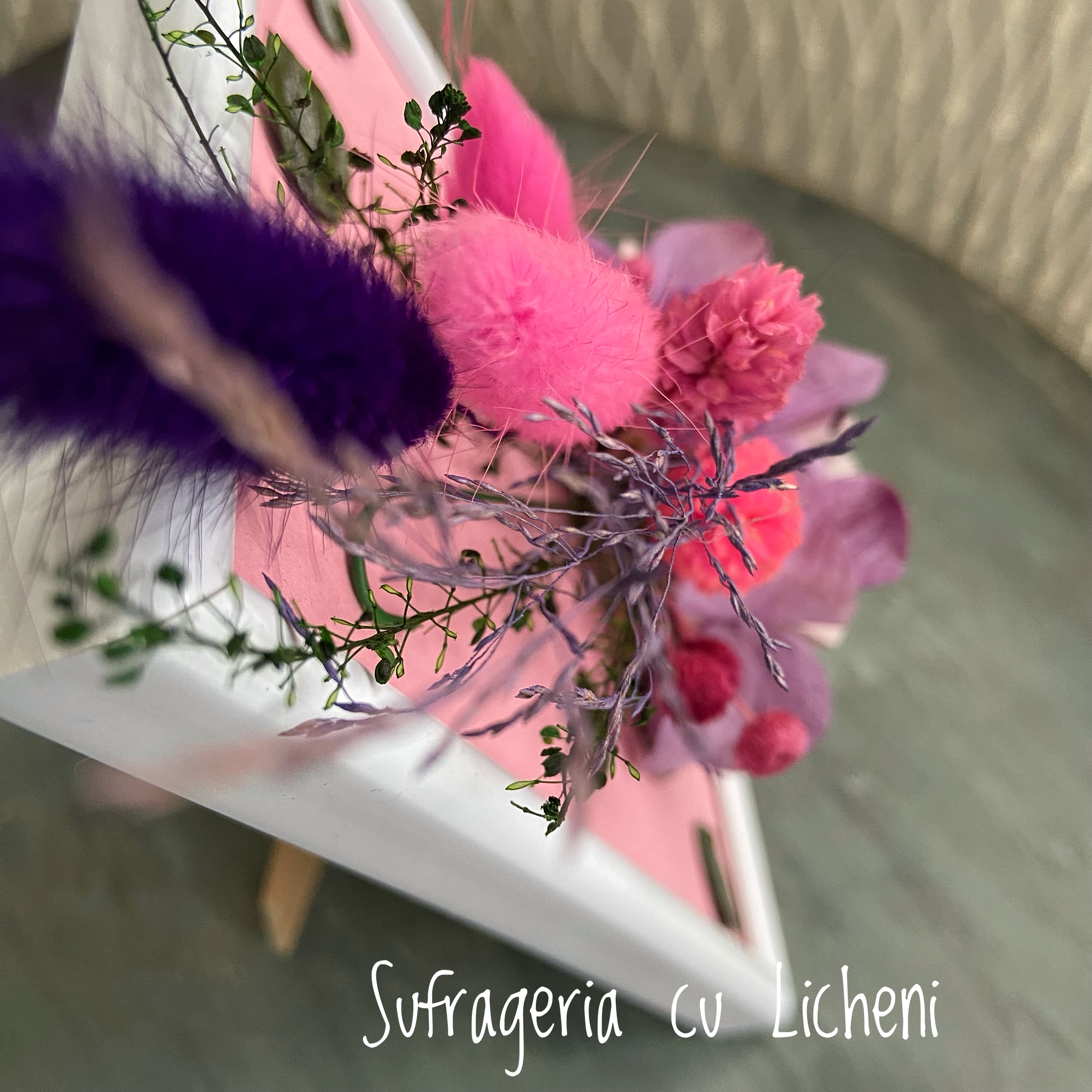 Materiale: Flori stabilizate și flori uscate.