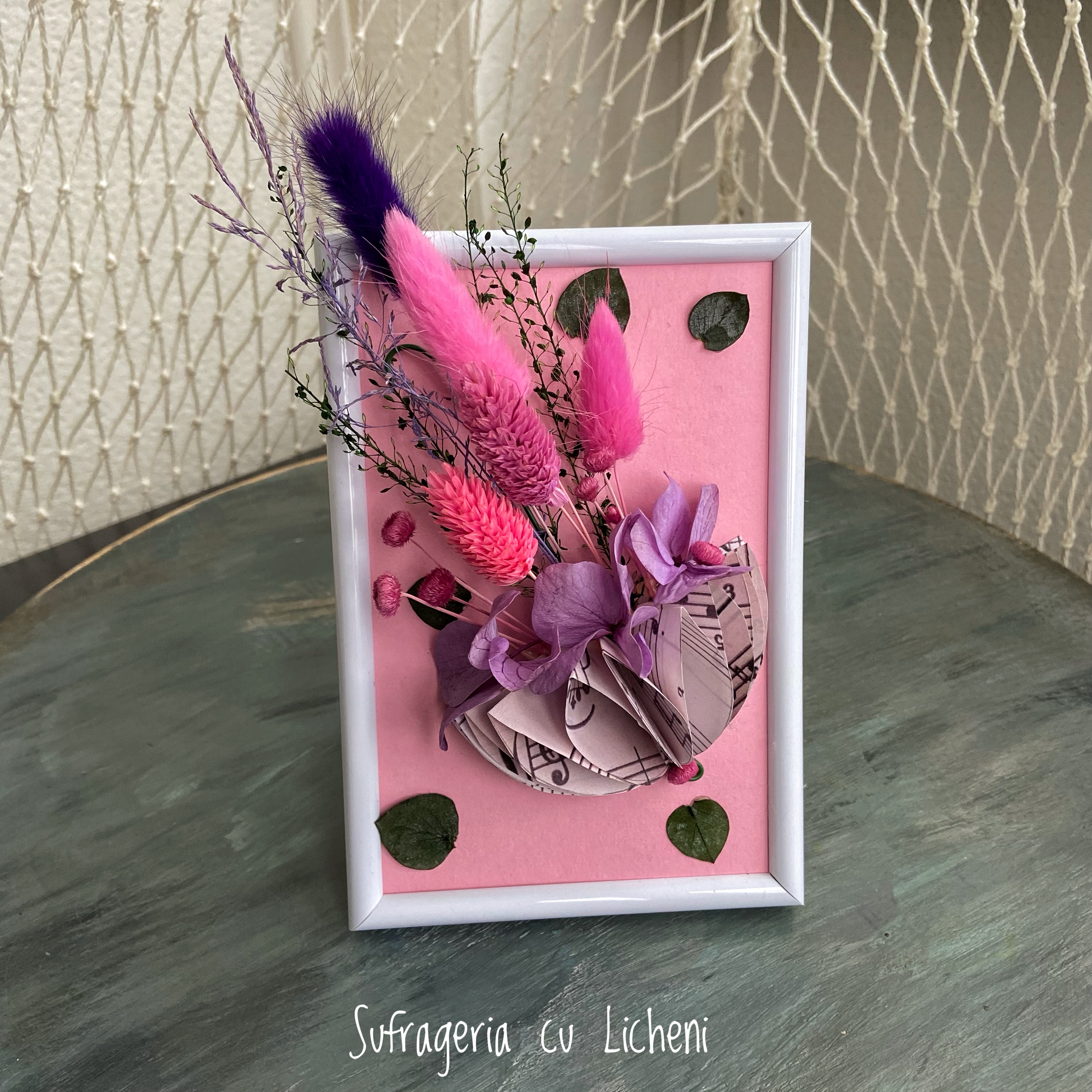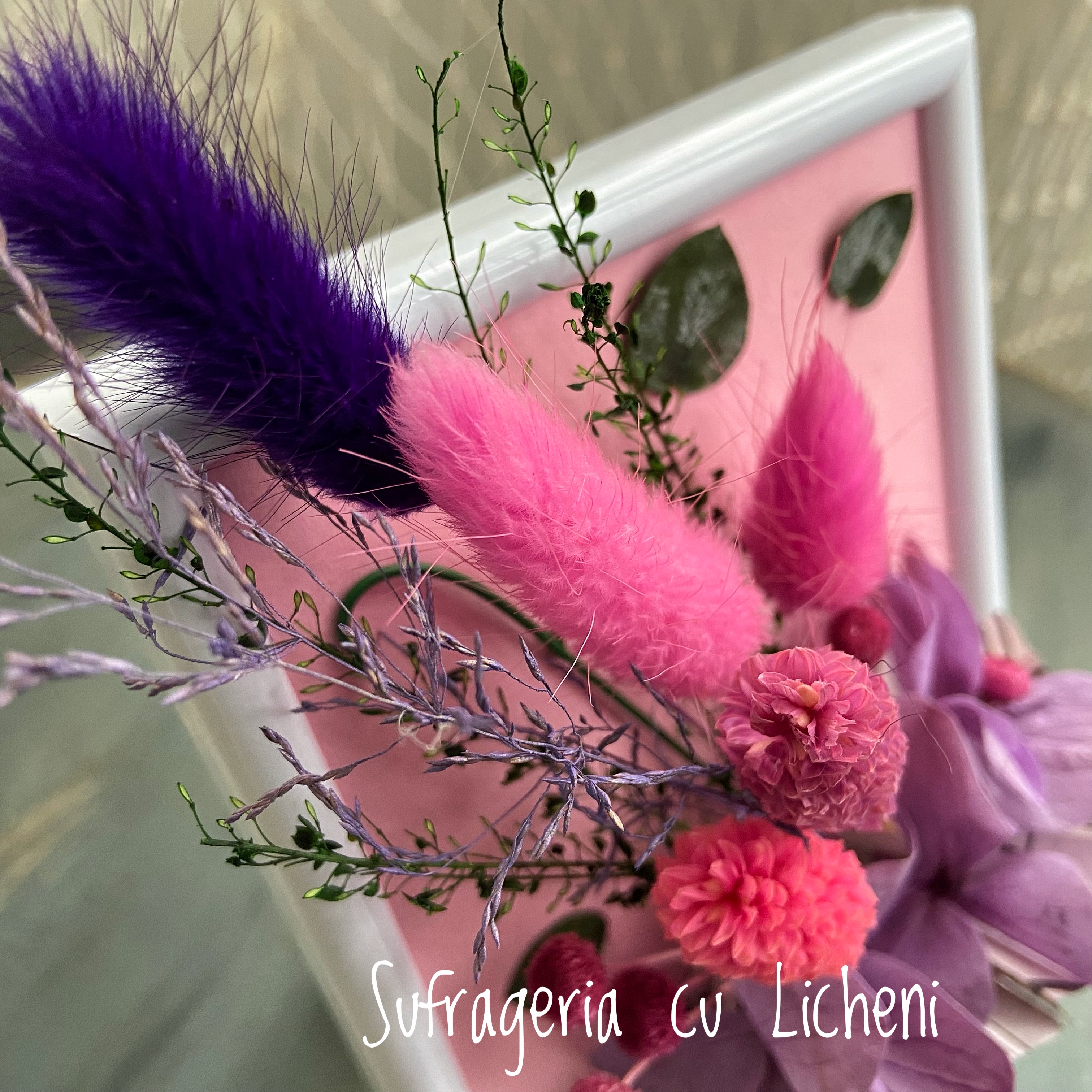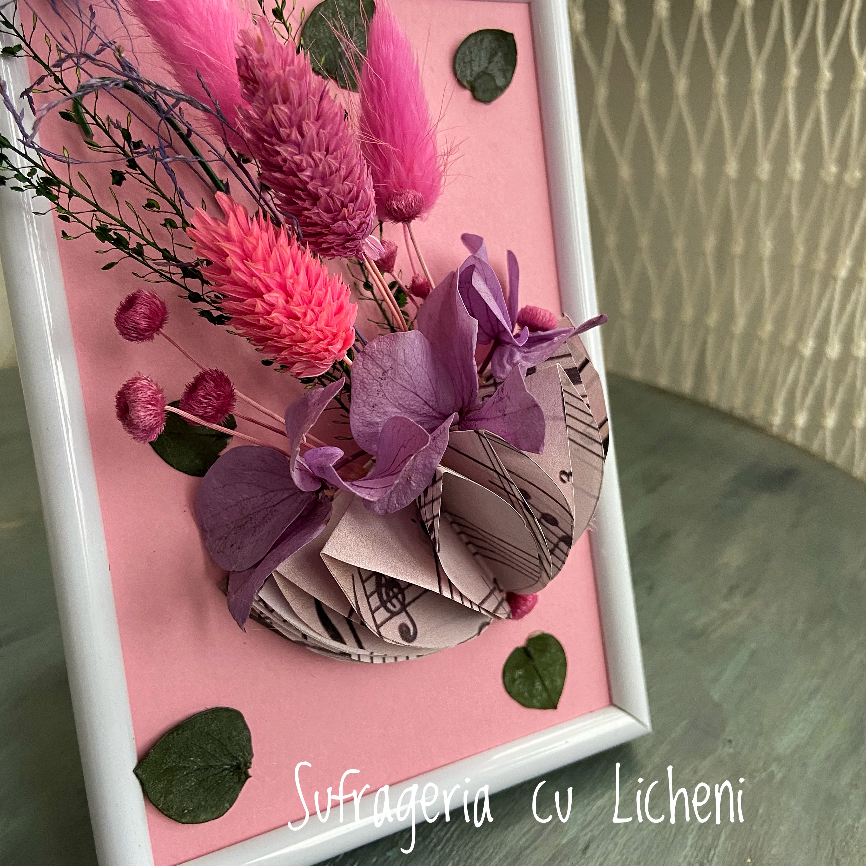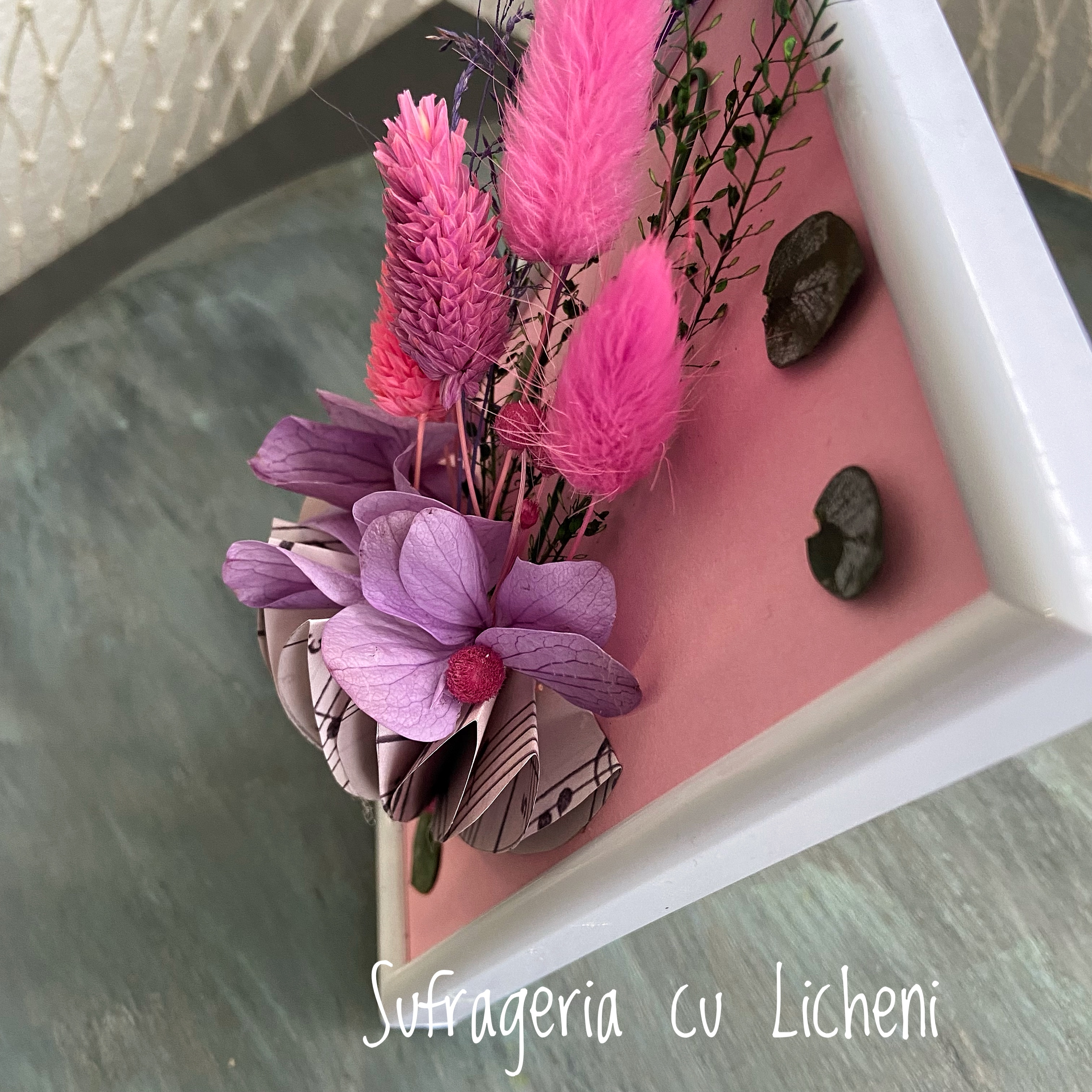 Materiale: Flori stabilizate și flori uscate.