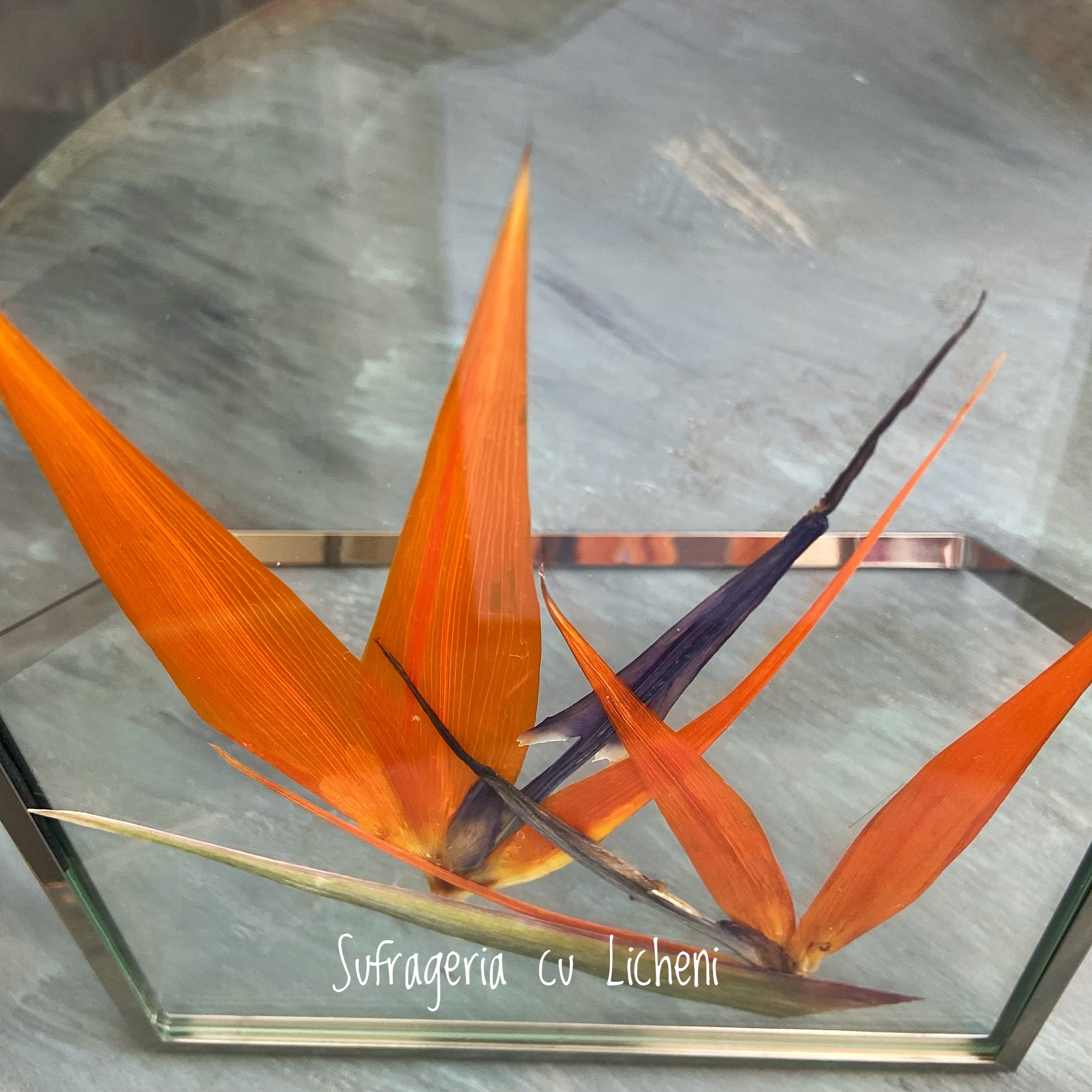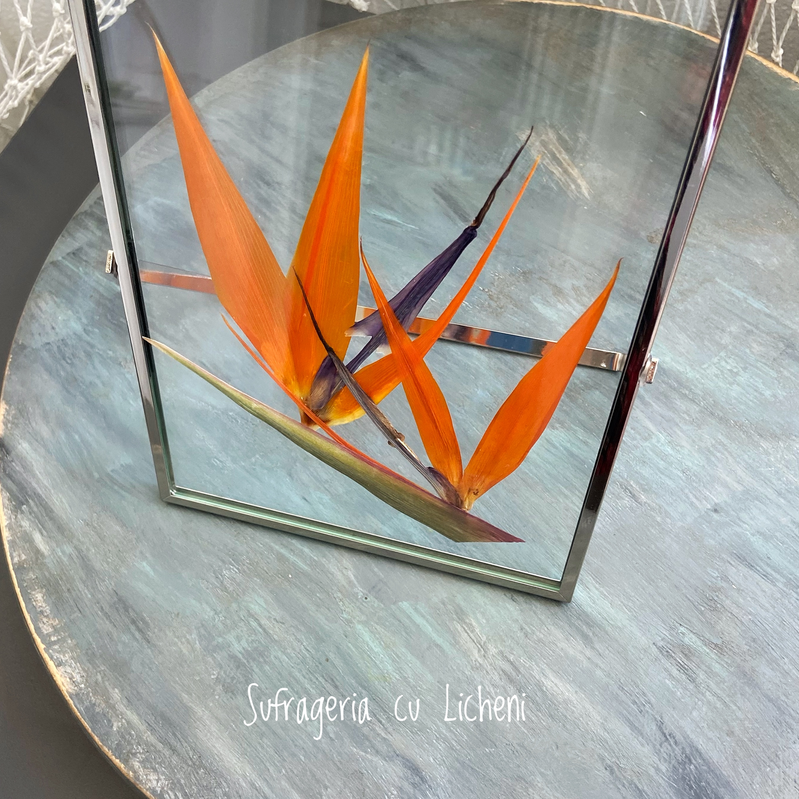 Materiale: Flori naturale presate Strelitzia - Pasărea Paradisului.
