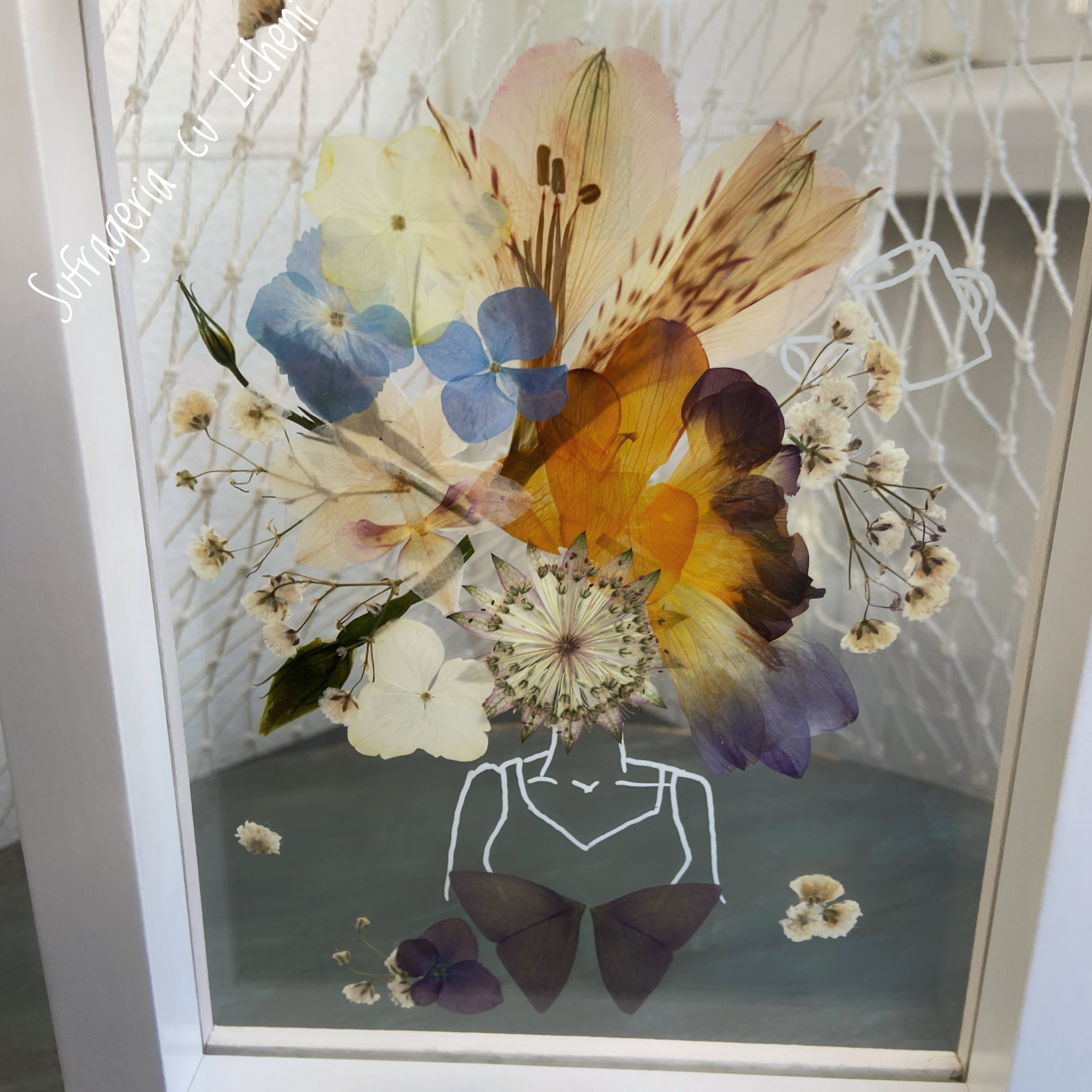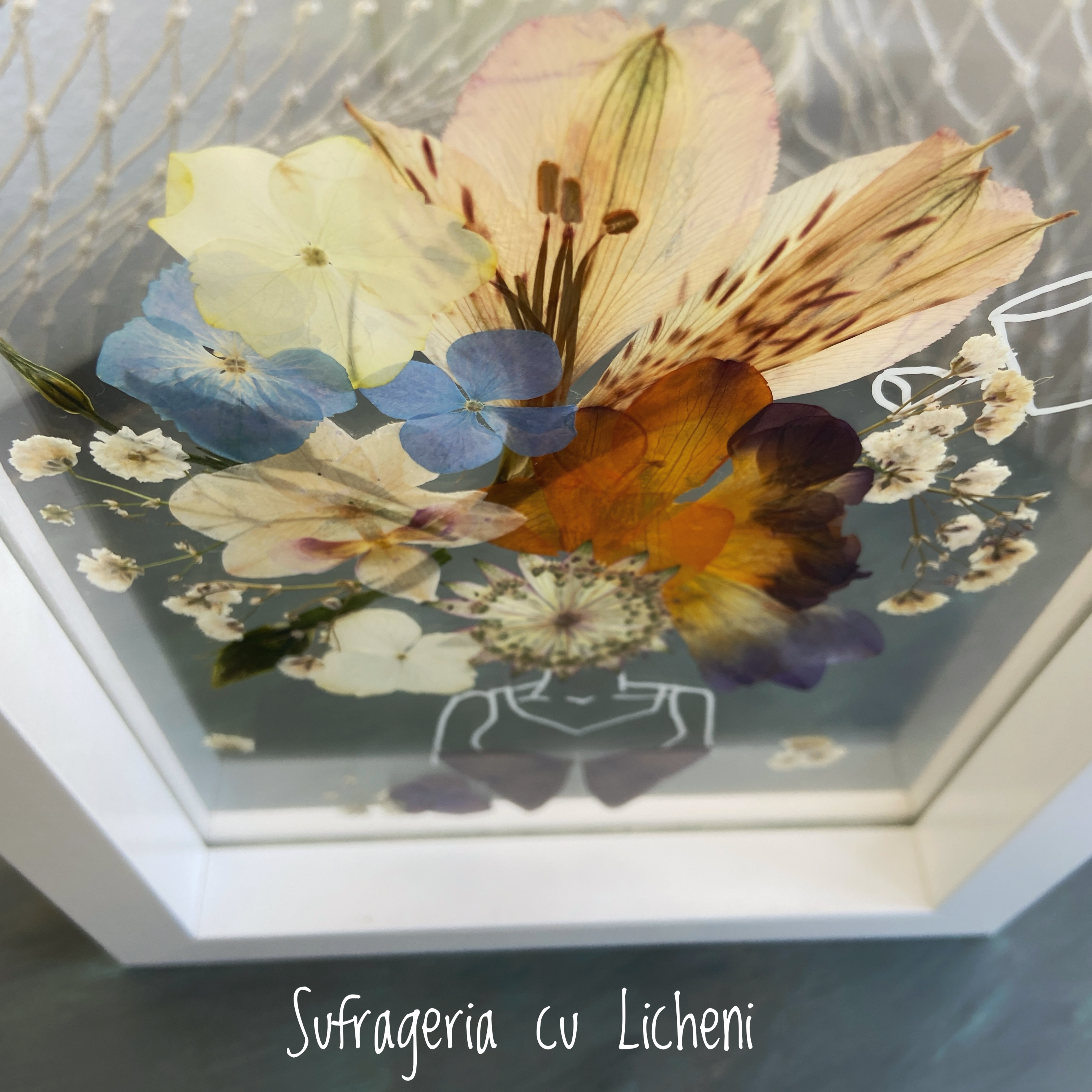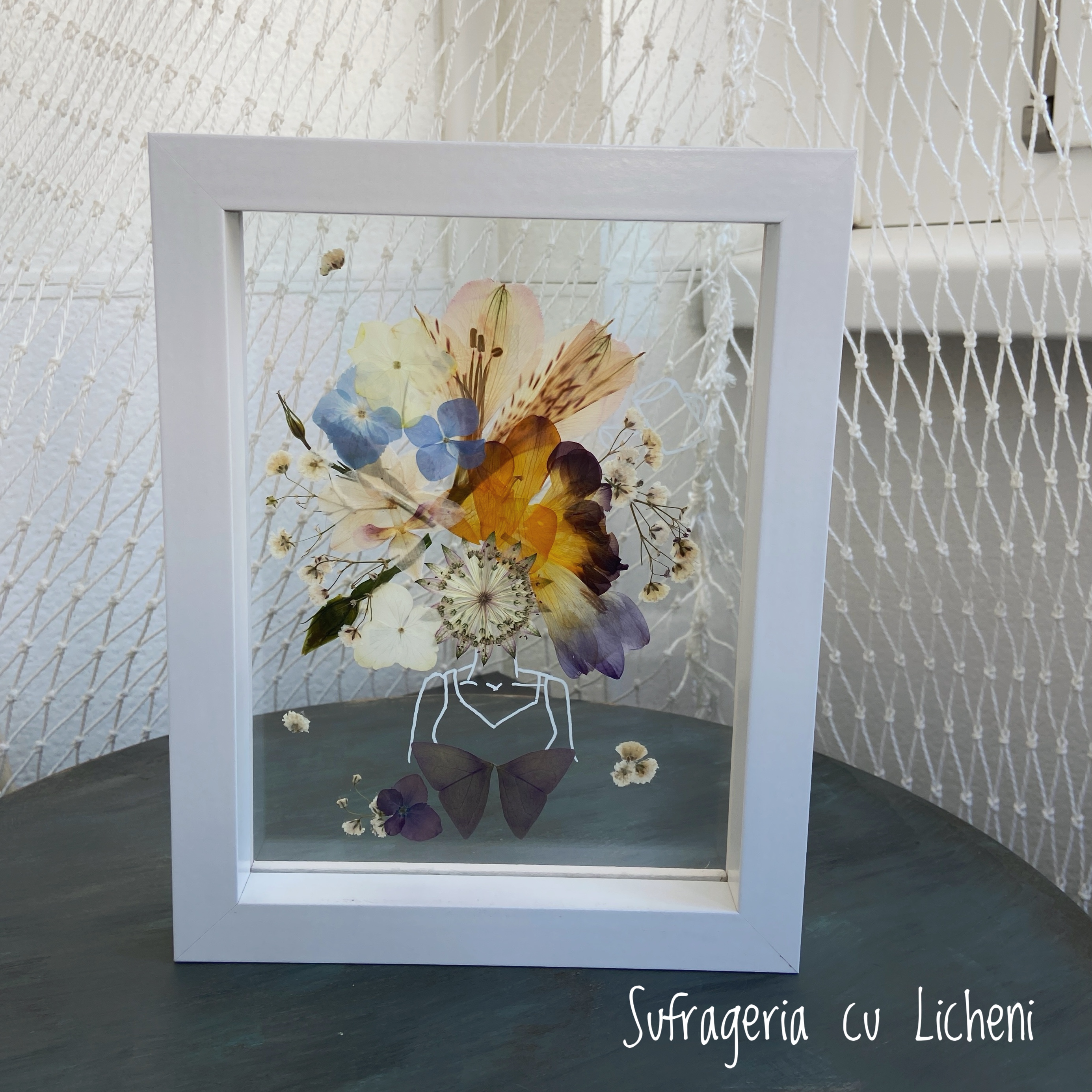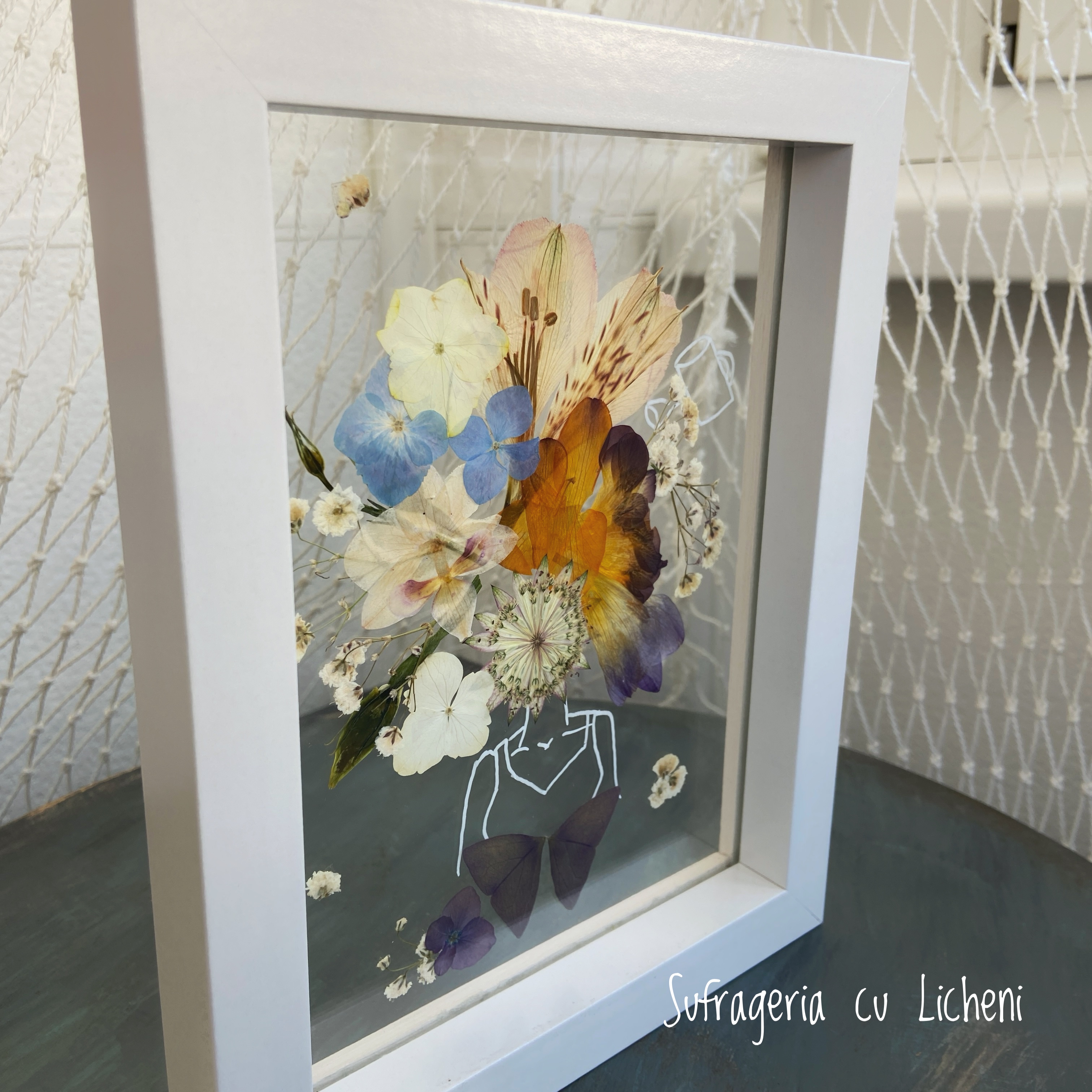 Materiale: Flori naturale presate, foliaj: alstroemeria, astrantia, gypsophila, hydrangea.