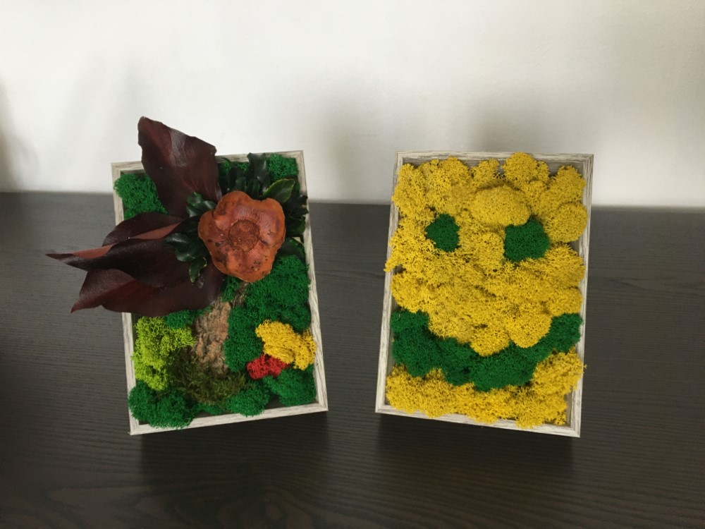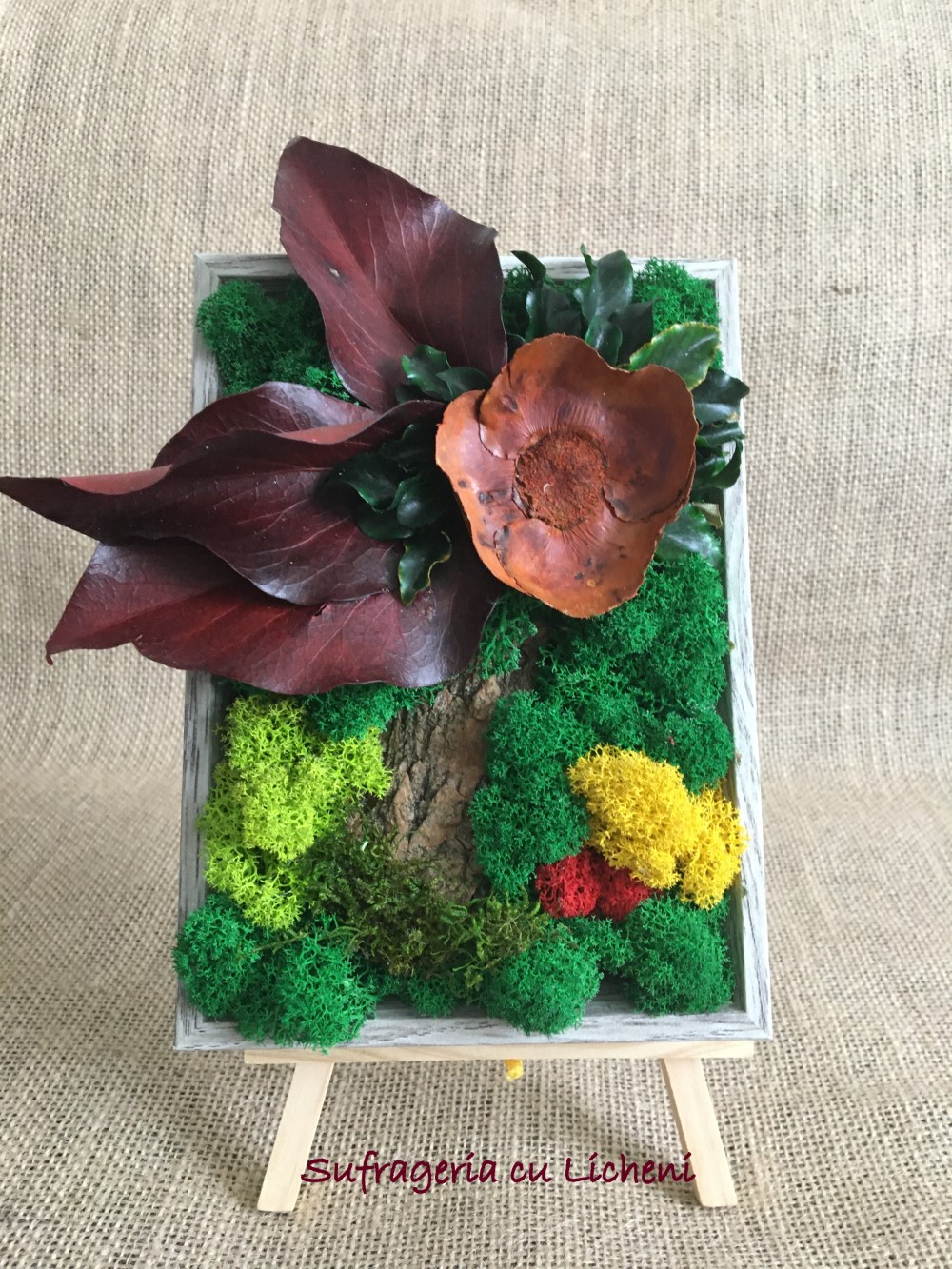 Materiale: Licheni stabilizați, flori uscate, mușchi și elemente din natură