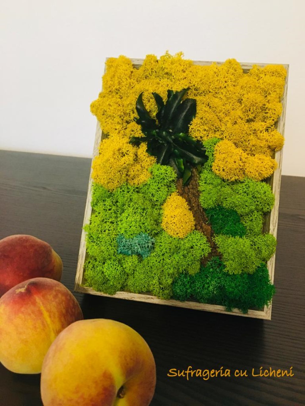 Materiale: Licheni stabilizați, flori uscate sau stabilizate, mușchi și elemente din natură